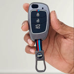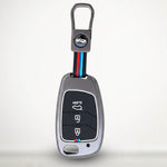 Metal Silicon Car Key Cover Compatible With Creta, Venue, Aura, i20,Grand i10 Nios, Xcent | 3 Button Flip Key