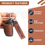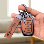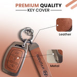 Metal Leather Car Key Cover Compatible with Grand i10 NIOS Asta, Venue, i20, Aura, Creta, Elantra | 3 Button Smart Key