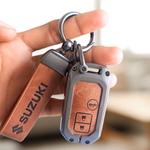 Metal Leather Key Cover for Suzuki Ertiga, Swift, Dzire, Baleno, Ignis, XL6, Franzo, Celerio, Ciaz, Brezza, Jimny | 3 Button Smart Key