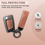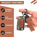 Metal Leather Key Cover for Skoda/Volkswagen Kushaq, kylaq, Octavia, Kodiaq, Superb, Slavia, Passat, Virtus, T Roc | 3 Button Flip Key