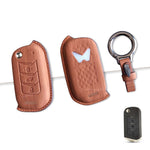 Leather Key Cover For Mahindra Scorpio, XUV 300, Marazzo, XUV 700, 3XO, XUV 400 EV, Bolero, Thar, TUV 3 & Thar Roxx | 3 Button Flip Key