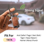 Metal Leather Car Key Cover For TATA Arai, Safari, Tiago, Zest, Bolt, Tigor, Hexa, Nexon, Harrier, Altroz, Punch | 3 Button Flip Key