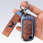 Metal Leather Key Cover For Mahindra Scorpio, XUV 300, Marazzo, XUV 700, 3XO, XUV 400 EV, Bolero, Thar, TUV 3 & Thar Roxx | 3 Button Flip Key