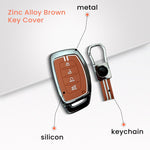 Metal Silicon Car Key Cover with Zinc Alloy For Hyundai Alcazar, Creta, Tucson - 4 Button Smart Key - 360° Shock-Proof Protection - (Biscuit Brown)